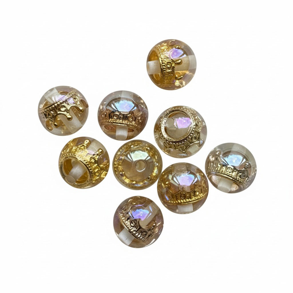Deze bijzondere kraal is een droom voor elke DIY-lover met oog voor detail. De goudkleurige kroon in het midden geeft een koninklijke uitstraling. Perfect om je pen een vorstelijke upgrade te geven, maar ook schitterend in sieraden, sleutelhangers of andere decoratieve projecten.