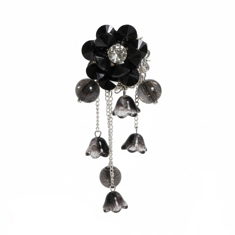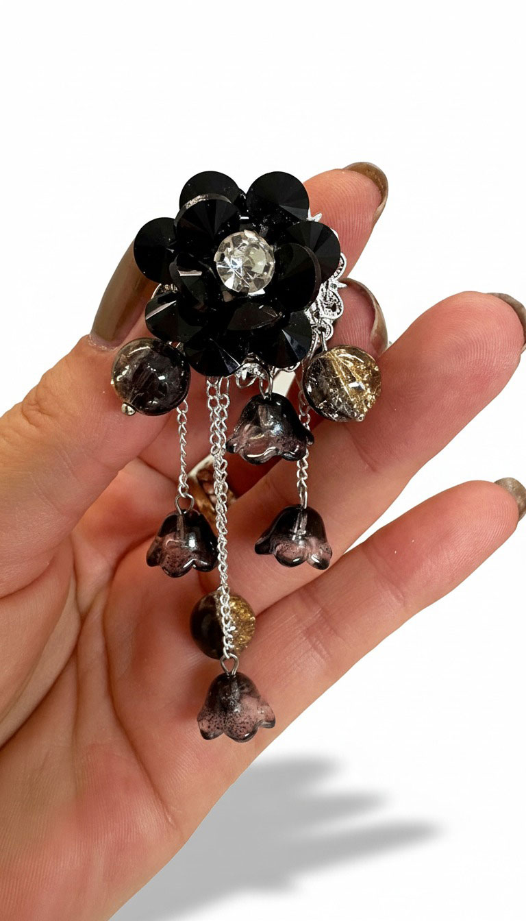 Breng een mysterieuze en stijlvolle touch aan je creaties met deze charmante bloemvormige kraal. Opgebouwd uit glinsterende steentjes in diep zwart, straalt deze kraal elegantie en kracht uit. De decoratieve hangers zorgen voor een sierlijke beweging, waardoor dit ontwerp perfect is voor het maken van unieke sleutelhangers, stijlvolle pennen of andere DIY-accessoires met een edgy uitstraling.