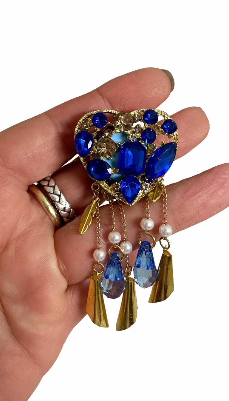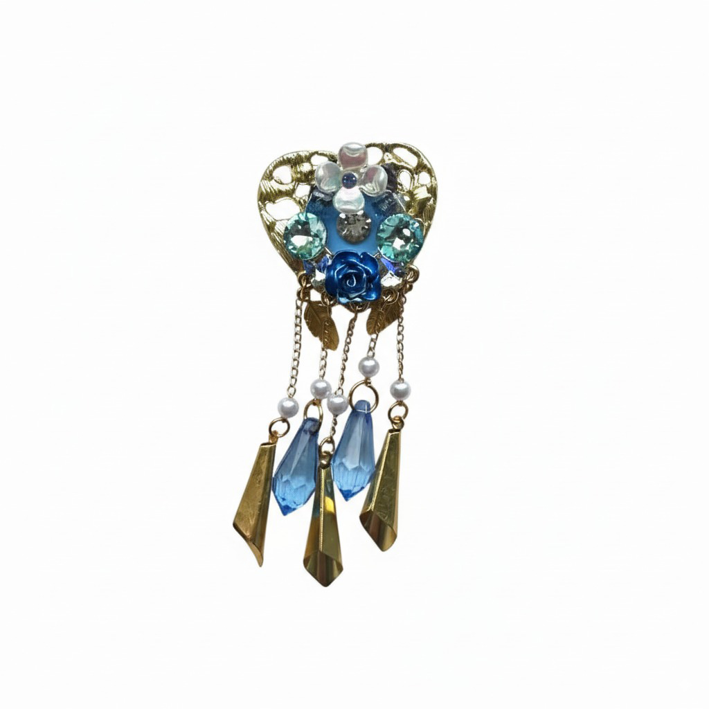Deze kraal is een echte eyecatcher voor iedereen die houdt van een vleugje glamour. Het goudkleurige hart is rijkelijk versierd met kobaltblauwe stenen die schitteren bij elke beweging. De decoratieve hangers zorgen voor extra flair en maken dit ontwerp perfect voor het creëren van luxe sleutelhangers, sierlijke pennen of andere unieke accessoires.