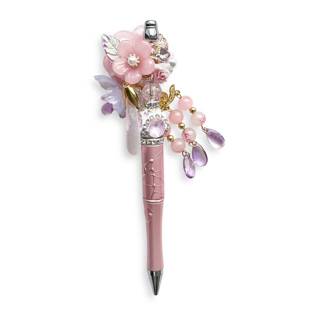 De Pink Grace Bloemenpen is een sierlijke pen met zachte roze bloemen en speelse hangers.