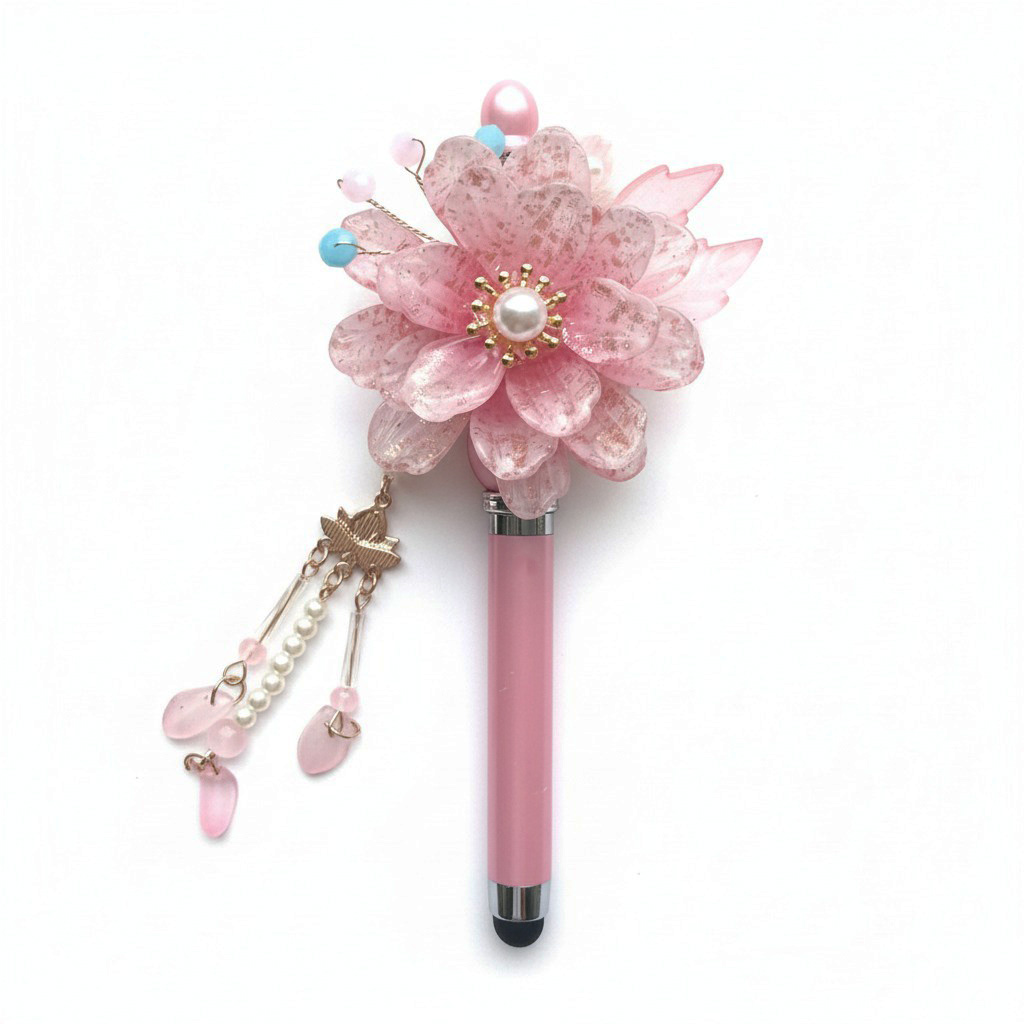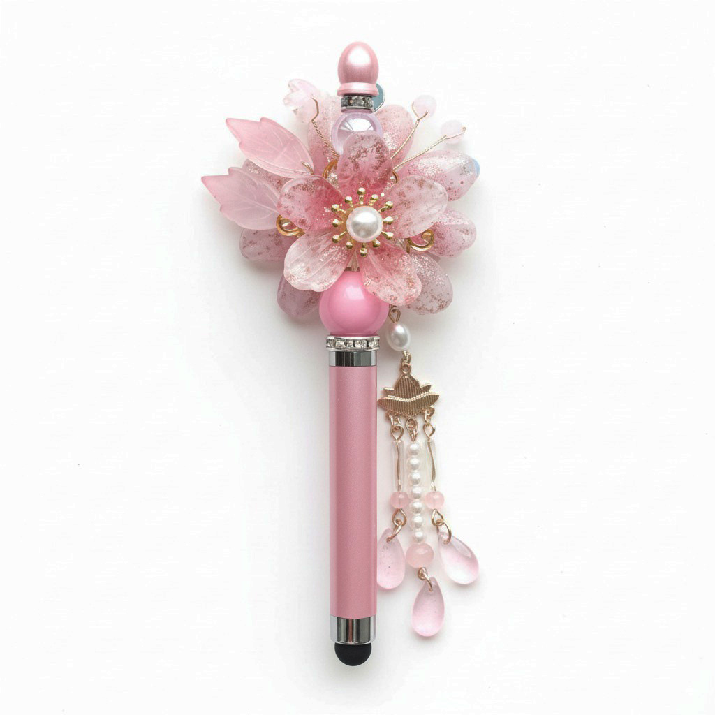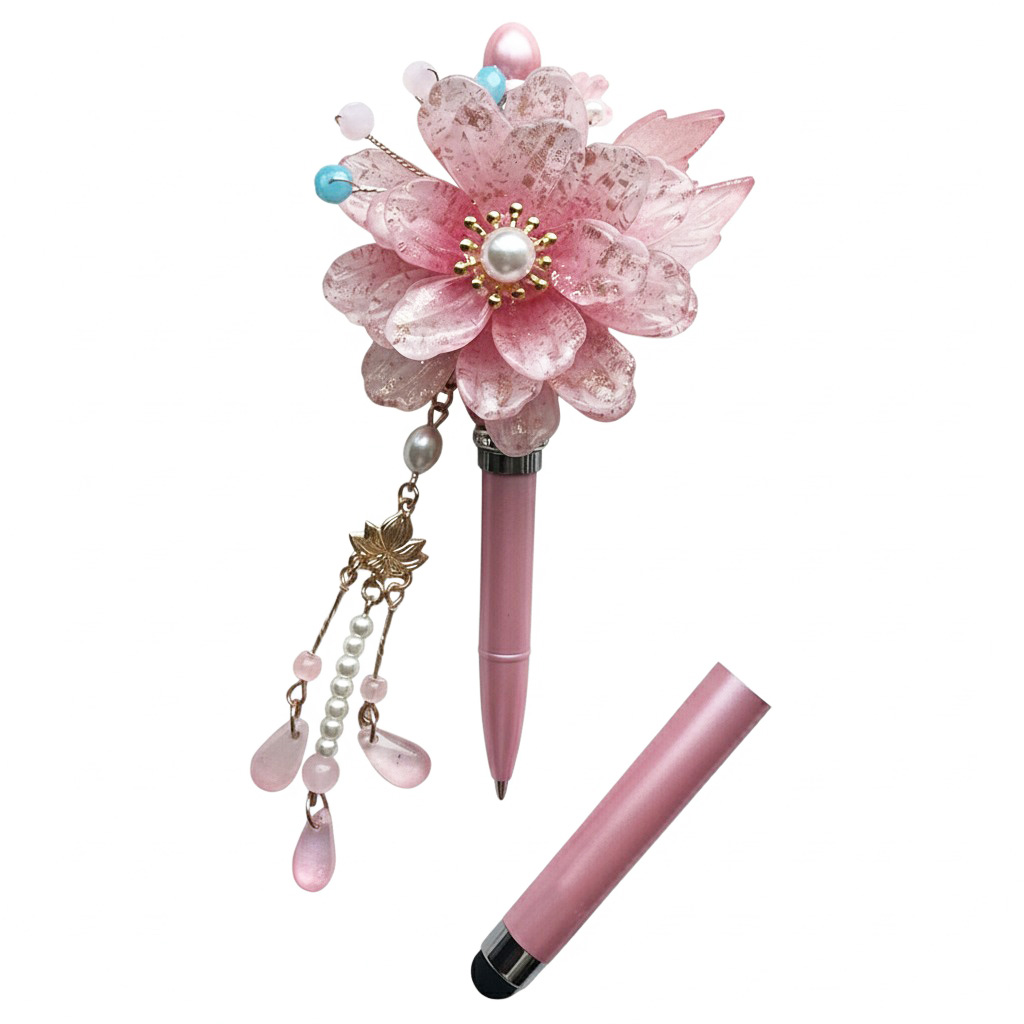 Een sierlijke pen met gouden spikkels, bloemenaccent én stylusfunctie. De Rosy Bloom Luxe Pen is jouw nieuwe favoriet voor schrijven én swipen met flair.