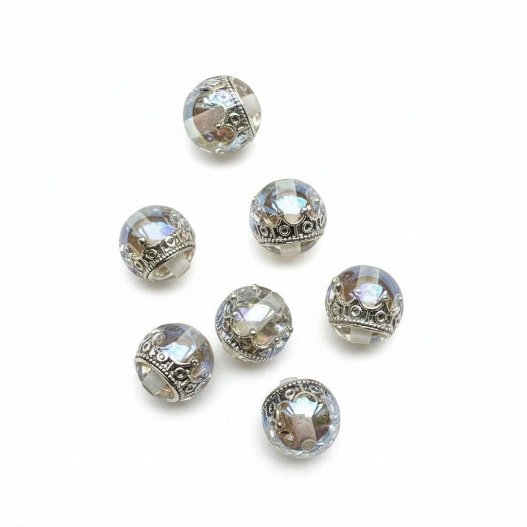 🌸 Deze witte kralenpen combineert een transparant / gouden vlinder topper kraal met een zilveren kroon kraal.