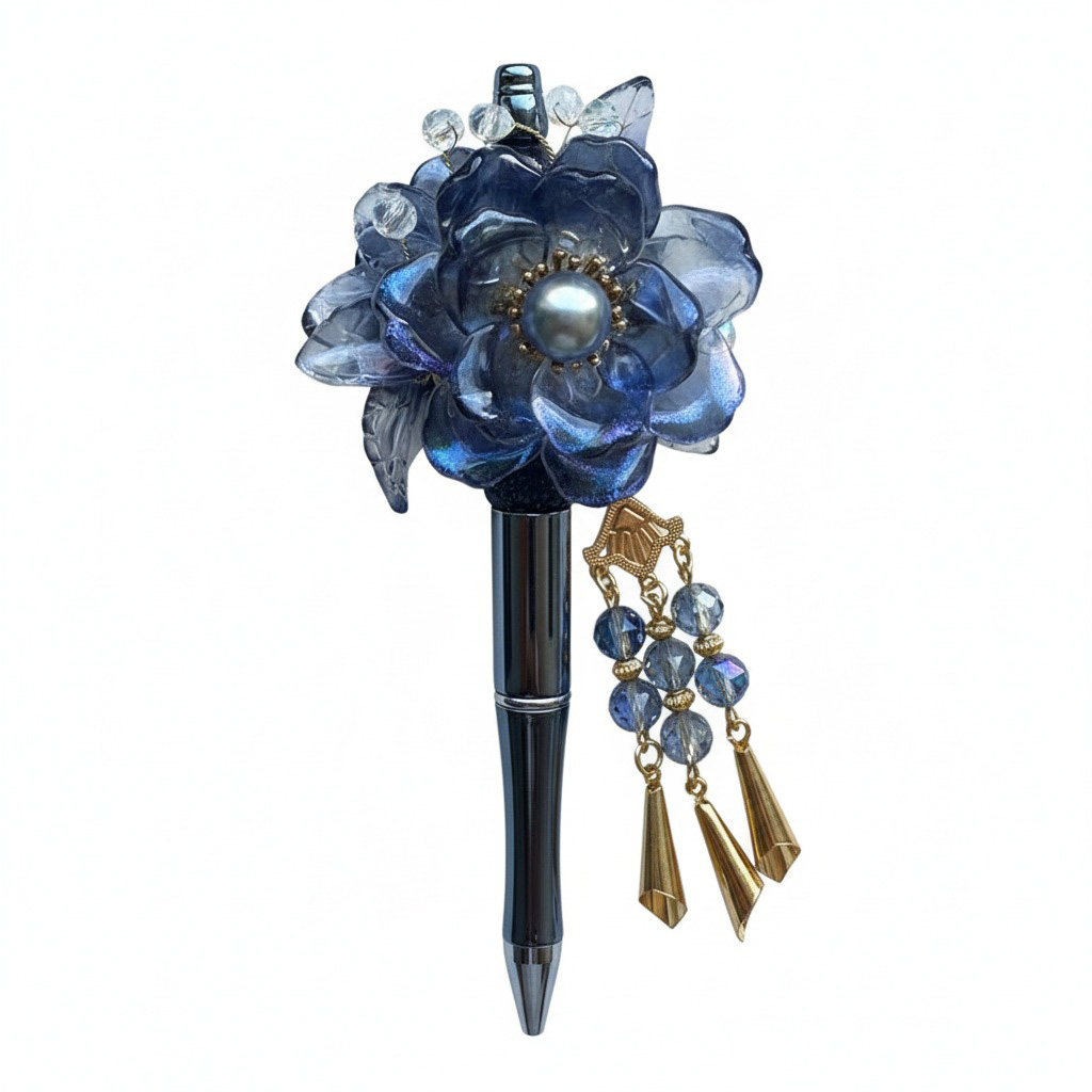 Laat je meevoeren naar een sterrennacht vol elegantie met de Midnight Sapphire Luxe Bloemenpen. Deze handgemaakte pen combineert een rijke navy blue bloem met een glanzende parel en sierlijke gouden hangers. Perfect als cadeau voor wie houdt van klasse, creativiteit en een vleugje mystiek. Een pen die niet alleen schrijft, maar ook schittert op elk bureau of in elk etui. Uniek, duurzaam en met liefde gemaakt.. Een pen met karakter, flair en een vleugje glamour. Ideaal voor wie houdt van mystiek, elegantie en een beetje bling.