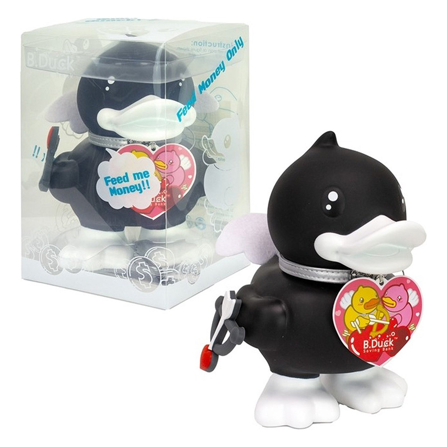 Originele en Limited Edition B.Duck spaarpot. Vier de liefde met deze exclusieve B.Duck spaarpot in Valentijnsstijl. Deze charmante eend is gehuld in een romantisch zwart Cupido-pakje, compleet met hartvormige details en een ondeugende blik. De gleuf bovenop zijn hoofd maakt het makkelijk om je kleingeld te bewaren, terwijl het afneembare hoofd toegang geeft tot je spaargeld.